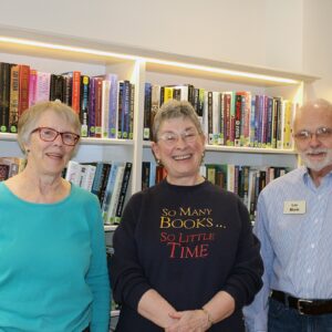The dedicated library committee worked in chorus to sort, decide the fate of, pack and unpack the books for the room’s revision. Committee Chairperson Pat Young, a former high school librarian met with the carpenters on the design of the shelving and selected the room color. During an interview with a few members of the committee and a quick tour, she shared, “There will also be a special collection section that switches out about four times annually – the first is on the topic of Genealogy.”